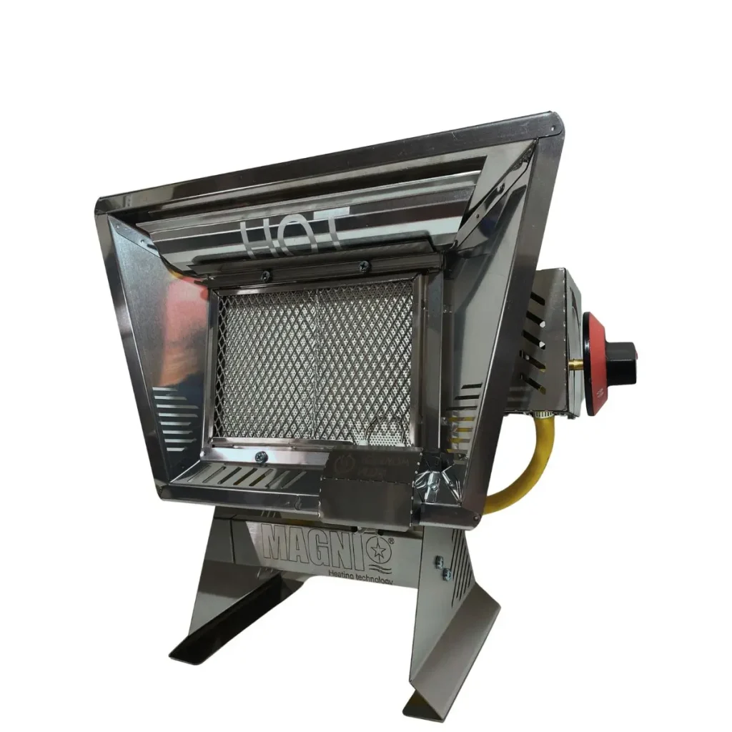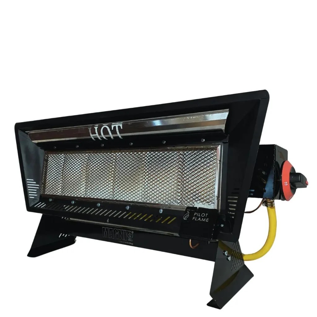 Los calefactores MAGNI funcionan mediante radiación infrarroja, calentando directamente a las personas y superficies sin necesidad de calentar el aire. Su tecnología autónoma a gas genera un efecto de calor suave y natural, similar al del sol, proporcionando una sensación térmica confortable y constante.